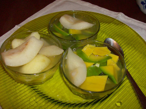 及以下步骤:水果煮熟了软面、汤甜好喝。简单好做。 取一个牛油果和一个梨、去皮、去核。切块备用。 再取一个苹果、去皮、去籽、切块备用。 取一个牛油果和一个梨、去皮、去核。切块备用。 再取一个苹果、去皮、去籽、切块备用。 苹果切好了立即下锅。 用白糖半小碗。 再用蜂蜜一汤勺。 把小锅刷干净、用半锅水煮水果、放白糖和蜂蜜。 水果煮熟了软面、汤甜好喝。简单好做。