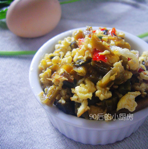 鸡蛋(一个) / 剩的炒酸菜(小半碗)