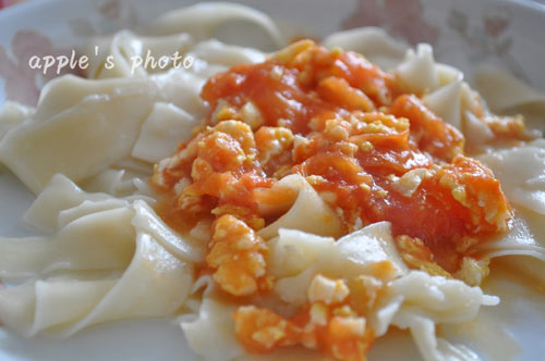 鸡蛋(适量) / 西红柿(适量) / 花生油(适量) / 手擀面(适量)