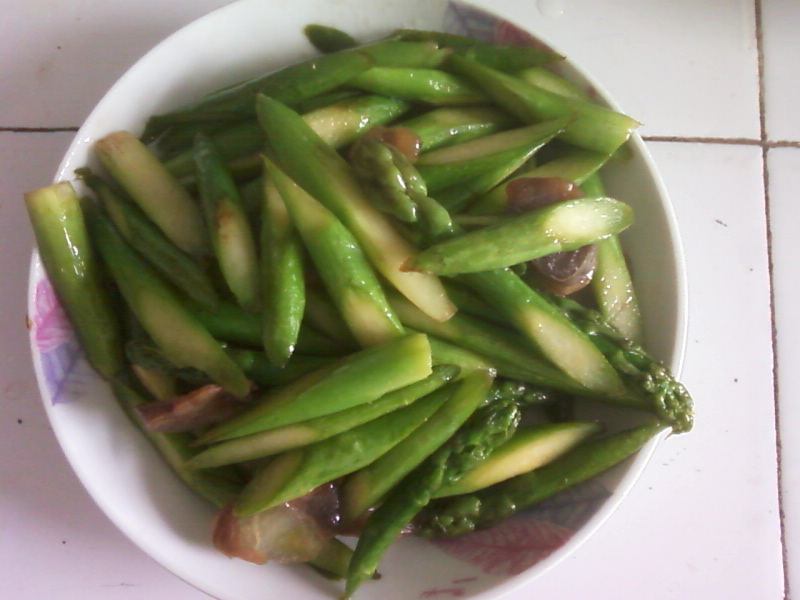及以下步骤:烧锅开水,将芦笋倒入烫两分钟左右,捞出过凉水。 将芦笋洗净,去掉外皮,切成适量的长度。 烧锅开水,将芦笋倒入烫两分钟左右,捞出过凉水。 将芦笋洗净,去掉外皮,切成适量的长度。 烧锅开水,将芦笋倒入烫两分钟左右,捞出过凉水。 将芦笋洗净,去掉外皮,切成适量的长度。 烧锅开水,将芦笋倒入烫两分钟左右,捞出过凉水。 将芦笋洗净,去掉外皮,切成适量的长度。 烧锅开水,将芦笋倒入烫两分钟左右,捞出过凉水。 烧锅倒入适量油,将芦笋倒入,大火炒一会,加入腊肠一起炒(昨晚剩下的一点点,反正两个人也吃不了多少),放入盐再炒一会就起锅装盘。