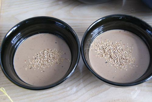 及以下步骤:少量多次的加入凉开水,直到稀释到你想要的稠度。 装碗,洒上芝麻就可以了。 可以开吃了。 朝一个方向一搅匀。 炒锅坐油,放入花椒炸香,放凉。 把椒油放入搅好的芝麻酱中。(我喜欢吃炸过的花椒,所以没把花椒扔掉。) 朝一个方向继续搅匀,一定要小心,不要让油洒出来。 少量多次的加入凉开水,直到稀释到你想要的稠度。 装碗,洒上芝麻就可以了。 可以开吃了。
