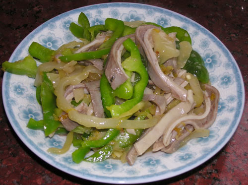 青椒(100克) / 咸菜(100克) / 煮熟的猪肚(250克)