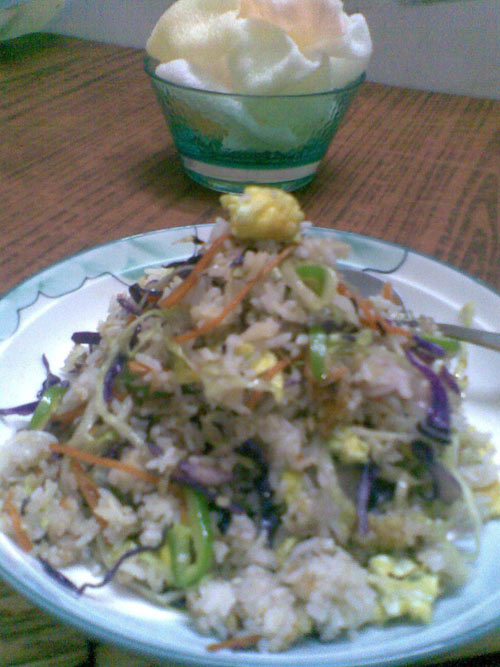 青椒(适量) / 红萝卜(适量) / 剩饭(适量) / 紫包菜(适量) / 平包菜(适量)