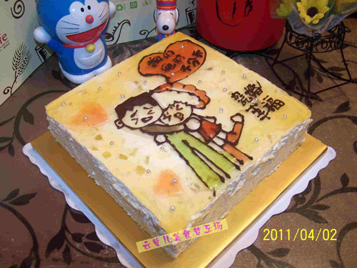 及以下步骤:巧克力熔化了用保鲜袋装入剪口勾勒线。 买了很多的旺仔qq糖,加热后上色用。 成品来喽。 蛋白+蛋黄糊搅拌好后上烤箱烘烤。 芒果肉250克(50克削成丁)用搅拌机打成泥。 吉利丁片5片用50克牛奶泡软再隔水加热溶化。 把吉利丁液倒入芒果泥中拌匀,再倒入鲜奶油 中(白砂糖100克加入到250克鲜奶油中打发到6成发就行了)拌匀,再拌入芒果丁就行了。蛋糕削成二片,先放入一片,倒入幕斯馅,再入一片蛋糕再倒入幕斯馅抹平,放冰箱冷藏一段时间,取出来倒入镜面液(50克qq 糖加橙汁溶化)再放冰箱冷藏一晚上,第二天再拿出装饰。 巧克力熔化了用保鲜袋装入剪口勾勒线。 买了很多的旺仔qq糖,加热后上色用。 成品来喽。