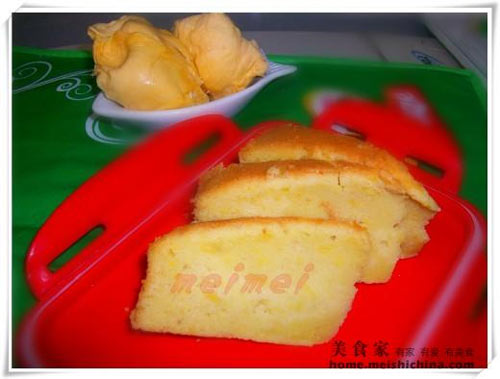牛油蛋糕大家吃的多吧!那么榴莲飘香的牛油蛋糕吃过了没。呵呵!这款牛油蛋糕夹着榴莲香味!口感很棒的呢!相信喜欢吃榴莲的来说好吃! 不喜欢吃的就会觉得恶心及味道很臭。