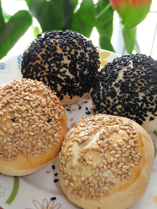 细砂糖(45克) / 水(60克) / 黑芝麻(适量) / 猪油(30克+150克) / 白芝麻(适量) / 绿豆沙(适量)