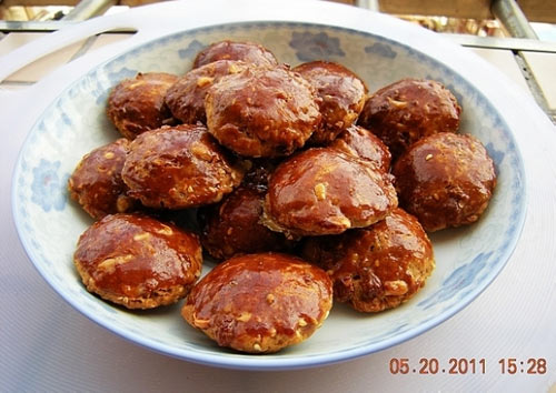 及以下步骤:主要材料准备好。 将所有材料混合在一起,搅拌均匀,揉成面团。 主要材料准备好。 将所有材料混合在一起,搅拌均匀,揉成面团。 先做冰肉,提前一周做好。 主要材料准备好。 将所有材料混合在一起,搅拌均匀,揉成面团。 捏成小饼,放入涂了油的烤盘,涂上蛋黄液。 放入190度预热的烤箱,190度10分钟后,160度再烤5到10分钟(视上色情况定)。 在烤箱中放凉后取出,不要急着吃,一两天后回软了味道更好哦。