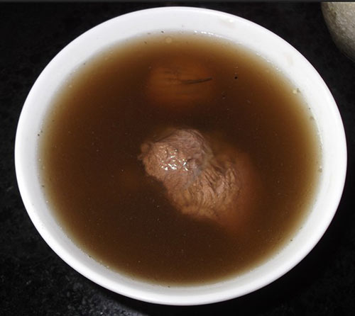 5、放盐调味(可不放)喝汤吃肉,猪横脷可以沾酱吃。