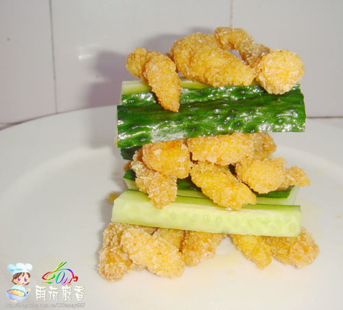 5、然后粘满面包渣待用;