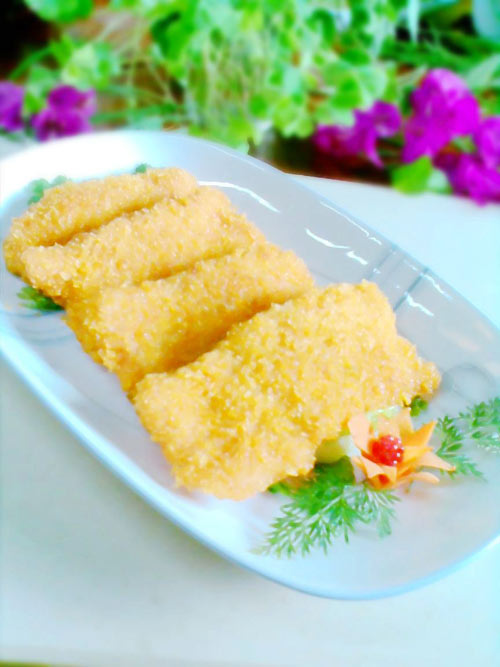 6、包裹好以后静置半小时,让蛋液与面包糠彻底粘合。
