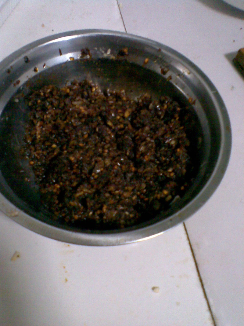 及以下步骤:搅一两分钟再加入酱油,盐,和糖 基本上成形了,不过还要炒,用小火,翻炒个十来分钟左右 做好了,放在碗里面凉干,再入玻璃瓶,放入冰箱 把辣椒切碎碎的 加入适量的油,加入蒜和洋葱在锅内炒一会儿 再加入虾米碎,炒一两分钟,然后加入辣椒碎 不停的搅动 搅一两分钟再加入酱油,盐,和糖 基本上成形了,不过还要炒,用小火,翻炒个十来分钟左右 做好了,放在碗里面凉干,再入玻璃瓶,放入冰箱