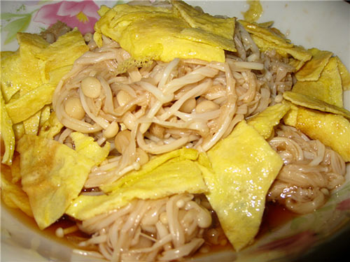 爽口的金针菇配上营养丰富的蛋皮,不仅颜色好看而且味道也很美哦。