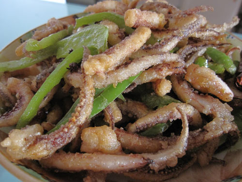 7、炸好后的鱿鱼须。