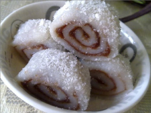 及以下步骤:从一头卷起来 外层裹上椰蓉,用刀切小块即可 用料图 把澄粉和糯米粉混和,加入适量热开水拌成面团 拌好放蒸锅里蒸熟 保鲜模擦点色拉油,把蒸熟的面团放上面 用擀面杖擀平,切去边角 将红豆沙均匀的涂在上面 从一头卷起来 外层裹上椰蓉,用刀切小块即可