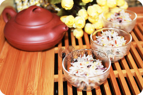 6、材料:八宝米150克 肉250克 姜 料酒 糖 盐 鸡精 适量。