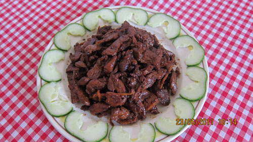 其实这个真正是鹿肉的做法,只是我把它改变成用猪肉来弄。用鹿肉时你只要把姜丝放多一点就可以了。鹿肉的口感更加嫩滑好吃哦!