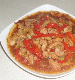 糖(少许) / 酱油(大半两) / 红椒(一只) / 京葱(一根)