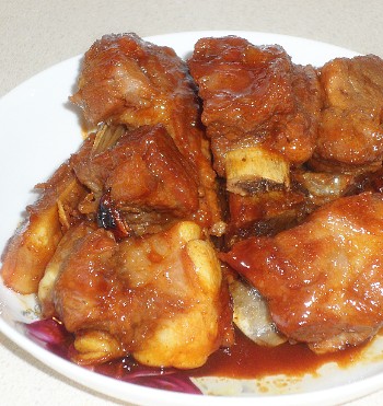 取上好的猪肉仔排,加以酱油、糖、八角、黄酒等调味,煮至肉质酥烂,咸甜适口,是老少皆宜的美味菜肴.