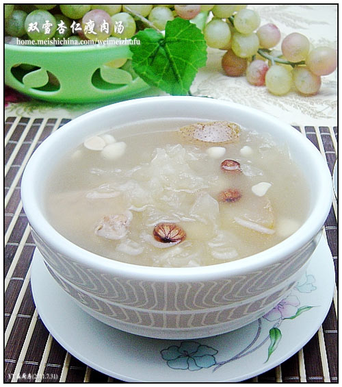 双雪杏仁瘦肉汤烹饪方法 图片大全及制作所需厨具设备是网友推荐小编整理所得,是网友的分享推荐,是饮食文化的资源共享,中华美食文化是中华文明的具体践行,美食双雪杏仁瘦肉汤烹饪制作就是在传承中华文化。