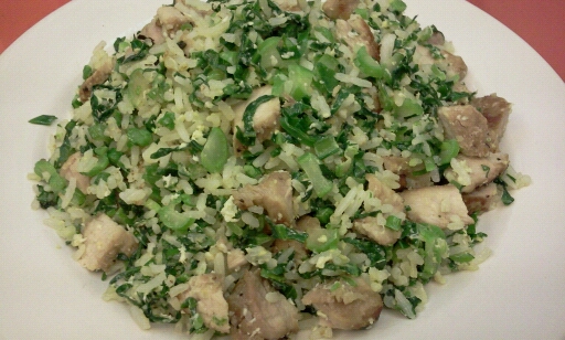 回到家, 開雪柜, 見有几支昨天留下的菜蕊, 還有一些剩飯, 一塊剩下的黑椒猪排, 小許葱. 就想著全取出來做個炒飯吃. 吃完后, 再給起個靚名: 翠綠黑椒肉粒炒飯 以上情形, 對家里人少或單身來說, 最常有的, 每次用不到很多材料, 可以把多出的留下, 如工作回家太夜, 隨時可以做個炒飯, 或湯面, 並且是很美味的, 比吃泡泡面或叮叮飯有益多啦.