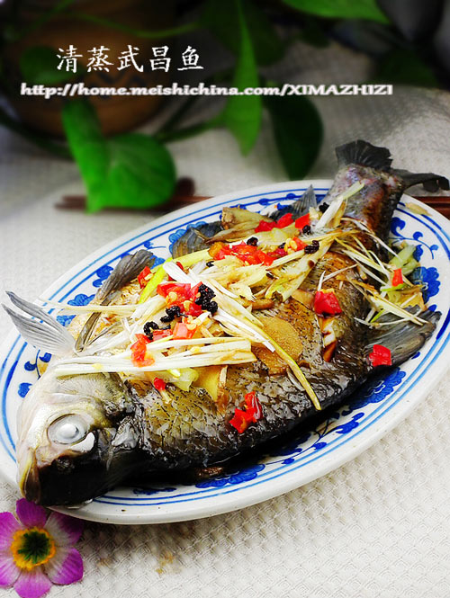 可能是天气炎热的原因吧,我家的饮食也变得清淡了,一直口味重的老公也喜欢吃清淡原汁原味的清蒸鱼了。 清蒸武昌鱼是选用鲜活的武昌鱼为主料,成菜鱼形完整、色白明亮、晶莹似玉;鱼身缀以红、白、黑配料,更显出素雅绚丽。菜品口感 鱼肉鲜美,汤汁清澈,原汁原味,淡爽鲜香,外带姜丝麻油,香气扑鼻。