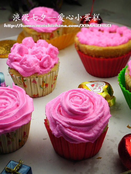 这款蜂蜜香蕉小蛋糕是特意为老公做的。老公平时肠胃不好,所以我在蛋糕原料里添加了蜂蜜和香蕉。蜂蜜对胃肠功能有调节作用,可使胃酸分泌正常。,蜂蜜有增强肠蠕动的作用,可显著缩短排便时间。 老公不爱吃甜食,可是非常喜欢吃这款蜂蜜香蕉小蛋糕,为了衬托浪漫七夕我特意在每个小蛋糕上做了装饰,很可爱滴哟。。。