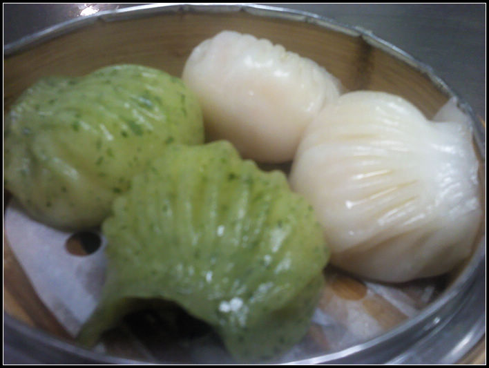 及以下步骤:菠菜放入果汁机,加进皮料里的水(一半)打碎。 皮料分一半,菠菜汁煮佛冲入一半的皮料粉里。 加进白奶油,槎至光滑。 用保鲜膜包好。 白皮也一样冲进佛水,搓至光滑。 取一小块,掌心按扁,用拍刀,拍成圆形。 放进虾,包成虾饺形。 放进笼子,放大火蒸五分钟。 好了,拿起,可吃了。(如包不到虾饺形,可包半月形)。 好了,拿起,可吃了。(如包不到虾饺形,可包半月形)。