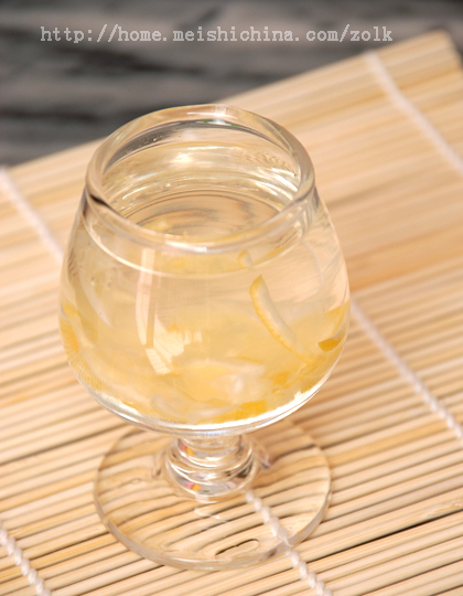 5、玻璃瓶下切好的柠檬肉。
