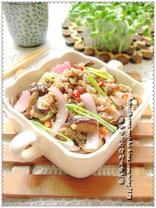 洋葱(半个) / 大葱(半根) / 泡好的香菇(100克) / 嫩牛肉片(500克)