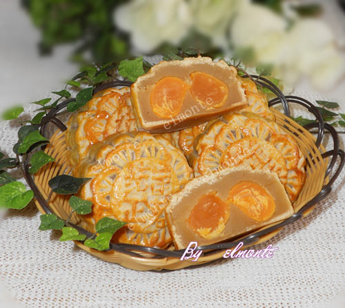 这几天做月饼,蛋糕,忙得昏头昏脑的,今天终于把最后一批赶出来,等不及回油,lg晚上就送了几个出去了。 今年用了韩国的面粉,吸水量比低粉高很多呢。