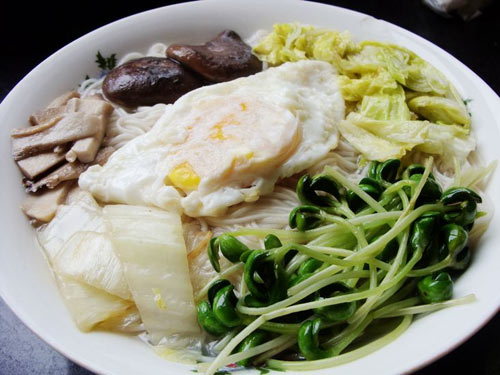 及以下步骤:倒入白菜杆先翻炒,并放入适量的盐。 再倒入香菇翻炒。 大约2分钟左右,倒入白菜叶子翻炒。 最后倒入豆苗,略微翻炒,豆苗断生变色,加入鸡精拌匀,即可关火。 另一只汤锅烧适量开水。 水开后,放入面条烧开,并加入适量的盐。 面条敞开煮2分钟左右,加入适量鸡精,即可关火,盛到盘内。将炒锅内的菜倒入盘中拌匀后即可食用。 另一只汤锅烧适量开水。 水开后,放入面条烧开,并加入适量的盐。 面条敞开煮2分钟左右,加入适量鸡精,即可关火,盛到盘内。将炒锅内的菜倒入盘中拌匀后即可食用。