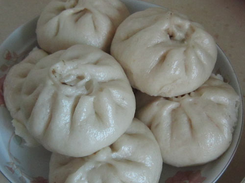 及以下步骤:准备发面团:所有原料用厨师机揉成光滑的面团即可。 温暖湿润处进行基础发酵。 发好的面团排气,搓成长条,在平分成小剂子。 将小剂子擀成中间厚边上薄的圆形面片,包入馅料,包成包子形状。 放入铺有湿纱布的蒸锅中醒发。 水开上汽后,蒸12分钟即可。 咬一口!好吃! 做成煎包也不错,包的手法相同,只是收口朝下,口要收紧,醒好后放煎锅里煎熟。 煎好的煎包,不过儿子还是喜欢吃蒸的包子。 煎好的煎包,不过儿子还是喜欢吃蒸的包子。