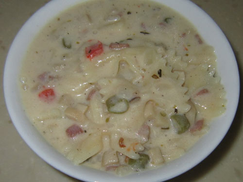 盐(适量) / 糖(适量) / 洋葱(1个) / 黄油(50克) / 牛奶(1000克) / 黑胡椒粉(适量) / 红甜椒(1只) / 刀豆(1把) / 意式香料(适量)