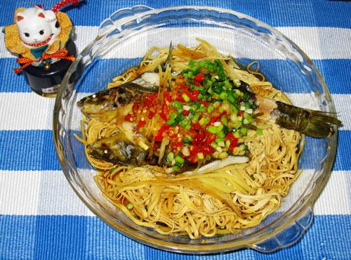 我通常都是蒸胖头鱼头时下面会垫上豆干丝。今天下班晚了,胖头鱼头没有了,只有这条黄颡鱼。