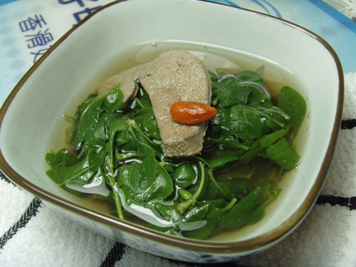 枸杞子(5粒) / 枸杞叶(50克) / 豬肝(50克)