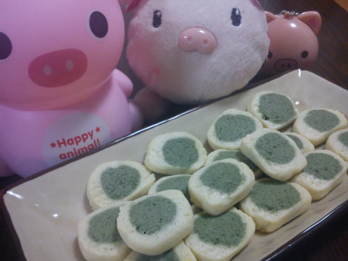 刚好打开新的绿茶油,就做个绿茶味的饼干吧~~包了边,就是不一样哈~~