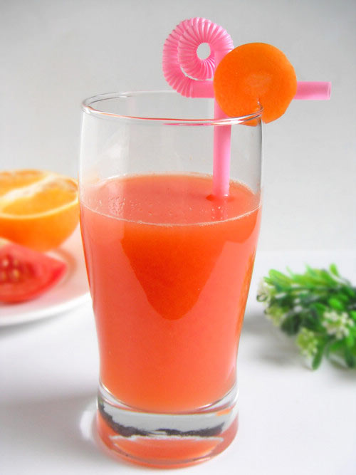 艳阳之舞—其实是胡萝卜番茄汁,因为这个果汁的颜色实在太惊艳了,所以我叫他艳阳之舞。 胡萝卜含有大量红萝卜素和维生素b1、b2、c、d、e、k以及叶酸、钙质和食物纤维等十几种营养素,使人体吸收营养更全面。他所含有的植物纤维能提高人体新陈代谢,达到自然减重的目的。不仅能抑制人体进食甜食和油腻食物的欲望,还能预防感冒,巩固视力。 常饮胡萝卜西红柿汁,有排毒瘦身的功效,一般人均可食用,尤其适合女性食用。