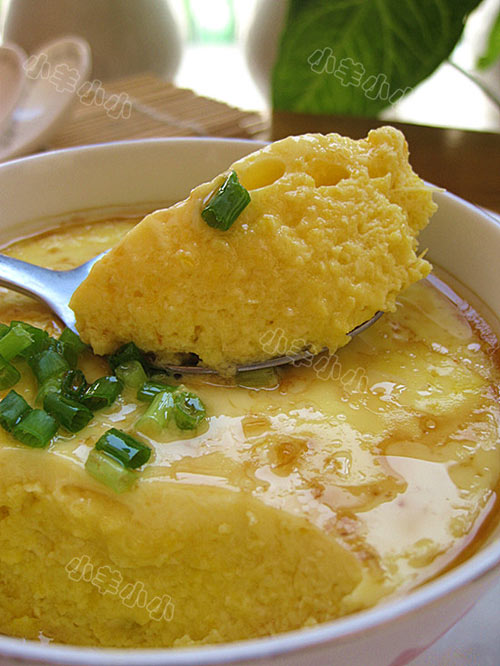 这款鸡蛋羹,表面看起来和平常的鸡蛋羹没有什么区别,但是一勺舀下去,你会惊喜的发现内部组织有像蜂窝一样有很多密麻细洞,这是些细密的蜂窝状就是玉米渣的杰作了。舀一勺放进嘴里,细碎玉米渣清香甘甜的口感加上鸡蛋的滑嫩,浅尝一口回味无穷。 在所有的主食中,玉米的营养价值和保健作用是最高的,玉米含有丰富的碳水化合物、蛋白质、脂肪、胡萝卜素等,具有调中开胃,益肺宁心,清湿热,利肝胆,延缓衰老等功能。玉米中还含有核黄素、维生素等营养物质,这些物质对预防心脏病、癌症等疾病有很大的好处。