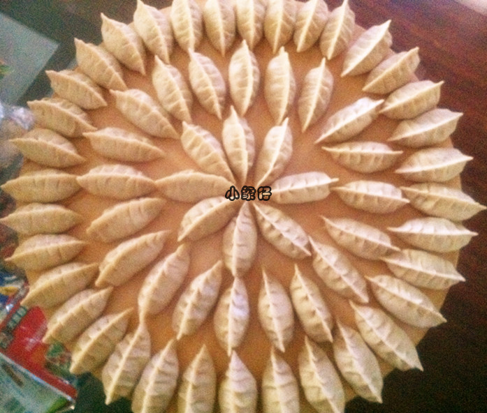 7、这个是饺子的普通包法,老妈教的,里面是萝卜丝猪肉的。