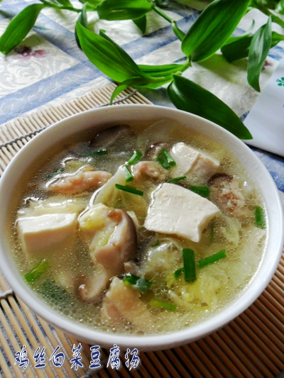 鸡丝白菜豆腐汤烹饪方法 图片大全及制作所需厨具设备是网友推荐小编整理所得,是网友的分享推荐,是饮食文化的资源共享,中华美食文化是中华文明的具体践行,美食鸡丝白菜豆腐汤烹饪制作就是在传承中华文化。