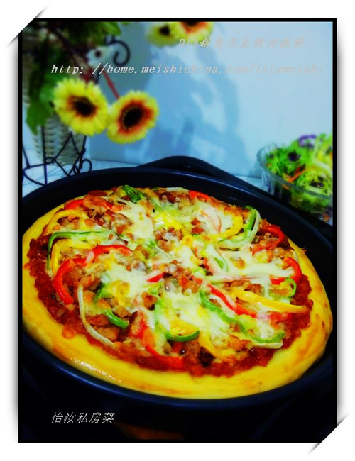 最近看见大家都在做披萨,我也是手痒痒的,很多年没有用过烤箱了,说句心里话,我心里还真是没有底,仔细看了老杨厨房和大炒勺的披萨,作为参考,这里非常感谢他们呢。我做这款【diy新奥尔良烤肉披萨】虽然第一次做,手脚有点笨拙,但是随着快要熟了,香味不断的飘出来,出来一看还是很美味,自己一个人照像,也没有办法照那个分块拉丝的,不过还是有拉丝的,味道也不错,只是饼坯还是厚了一些,下次做一个薄脆的披萨吃。