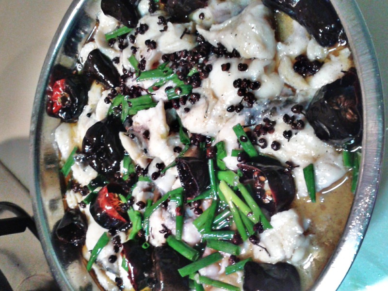 及以下步骤:把腌好的鱼肉一片片放到滚烫的水中 鱼片全放进去后,水再次烧开,将鱼肉捞出放入下面垫有配料青菜的盆中 锅洗净,加入四大勺油,大火,等到看到油锅中开始冒热烟了,加入辣椒,花椒爆香,然后迅速将油淋到鱼头盆子中,就可以问道一股香味扑鼻而来啦 好啦,,华丽丽的完成了 锅洗净,加一勺油,加姜丝,葱头末爆香,加小半勺盐 加入水烧开 把腌好的鱼肉一片片放到滚烫的水中 鱼片全放进去后,水再次烧开,将鱼肉捞出放入下面垫有配料青菜的盆中 锅洗净,加入四大勺油,大火,等到看到油锅中开始冒热烟了,加入辣椒,花椒爆香,然后迅速将油淋到鱼头盆子中,就可以问道一股香味扑鼻而来啦 好啦,,华丽丽的完成了