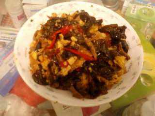 盐(适量) / 葱(适量) / 鸡蛋(适量) / 红辣椒(适量) / 老抽(适量) / 木耳(适量) / 辣椒面(适量) / 十三香(适量)