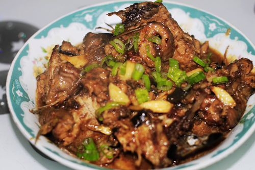 及以下步骤:用炸过蒜的油继续煎鱼,至鱼肉变白,倒出三分之二的油。 锅里留下小部分油,加入耗油、酱油、出香味后,加少量的醋、料酒,进一步去掉鱼腥。 锅里添烫(少量热水),不需要没过鱼,加糖(提鲜),白胡椒、1粒八角、辣椒、入葱姜和刚炸过的大蒜,少量的盐(因为耗油是咸的),中小火使鱼入味并将汤汁收浓 出锅,撒上香葱,漂漂亮亮的上桌了! 鱼皮很q,鱼肉也香香的,完全没有土腥味。 用炸过蒜的油继续煎鱼,至鱼肉变白,倒出三分之二的油。 锅里留下小部分油,加入耗油、酱油、出香味后,加少量的醋、料酒,进一步去掉鱼腥。 锅里添烫(少量热水),不需要没过鱼,加糖(提鲜),白胡椒、1粒八角、辣椒、入葱姜和刚炸过的大蒜,少量的盐(因为耗油是咸的),中小火使鱼入味并将汤汁收浓 出锅,撒上香葱,漂漂亮亮的上桌了! 鱼皮很q,鱼肉也香香的,完全没有土腥味。