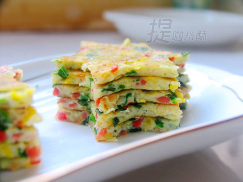 宝贝一直对绿叶蔬菜比较排斥,吃到嘴里也会给吐出来,没办法,只能想着法、变着花样把绿叶菜做成她喜欢吃的食物。比如今天这款迷你蔬菜小饼。 因为有了鸡蛋、胡萝卜、新鲜玉米及青菜的加入,使得这款饼子已经不是一般意义上的饼子了。做成的饼子口感绵软香甜,营养丰富而且又非常容易消化,特别适合老人、小孩及肠胃不是很好的人士食用。 而最后把饼子做成小巧的星星形状,使得宝宝的小手拿捏起来更加方便,小嘴吃起来也就非常地给力了。