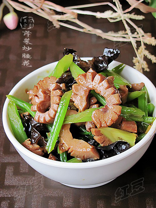 芹菜(250克) / 猪腰(2个) / 泡发的木耳(适量)