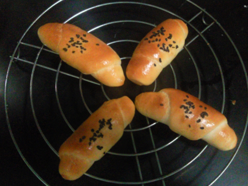 4、最后发酵完毕,刷蛋液。预热烤箱,180度,中层,15分钟。