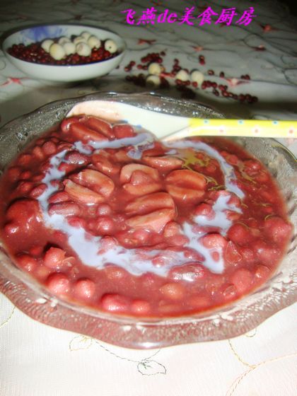 及以下步骤:20分钟关火,消气后打开高压锅。 放白糖调味,喜欢甜的可以多放些,稍加搅拌。 盛出后放炼乳,搅匀即可食用了。 1.红豆一定要提前泡好,可以缩短煮至时间。 莲子泡好后,剥开去掉里面的莲子心。 把莲子放盛有红豆到高压锅里,把盖盖好,大火,上汽后转小火,20分钟。 20分钟关火,消气后打开高压锅。 放白糖调味,喜欢甜的可以多放些,稍加搅拌。 盛出后放炼乳,搅匀即可食用了。 1.红豆一定要提前泡好,可以缩短煮至时间。