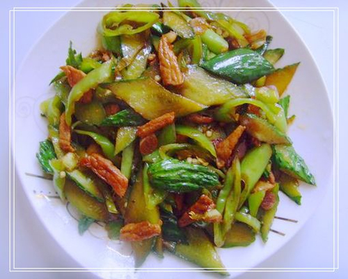 黄瓜是餐桌上的平民蔬菜 以其营养、价廉大受青睐 青椒含有丰富的维生素c 能增进食欲、帮助消化、促进肠蠕动、防止便秘
