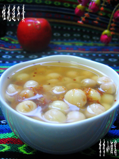 桂花莲子羹烹饪方法 图片大全及制作所需厨具设备是网友推荐小编整理所得,是网友的分享推荐,是饮食文化的资源共享,中华美食文化是中华文明的具体践行,美食桂花莲子羹烹饪制作就是在传承中华文化。
